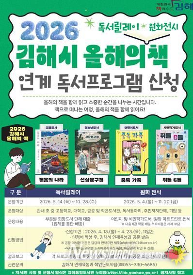 뉴스펀치 박세훈 기자 | 김해시는 ‘2026 김해시 올해의 책’ 독서릴레이와 독후활동에 참여할 기관 및 단체를 13일부터 모집 중이라고 밝혔다.