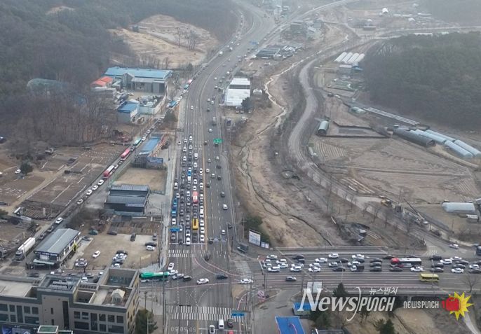 특히 신평화로(3번국도대체우회도로) 양주 방향에서 자금IC로 내려오는 구간은 대기행렬이 길게 이어져, 광사교차로부터 성모병원 앞 사거리까지 약 3.4km 구간에서 첨두시간(교통량이 가장 많은 시간) 평균 통행시간이 15~20분 정도 소요됐다.