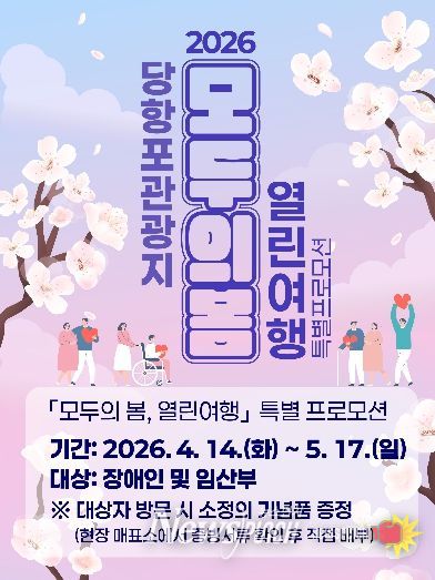 '2026 모두의 봄, 열린여행' 특별 포로모션은 한국관광공사가 주관하고 열린관광지 운영 지자체 및 민간사업체가 함께 운영하는 관광취약계층 특화 프로모션으로, 장애인·고령자 등 관광 소외계층이 보다 편안하게 국내 관광지를 즐길 수 있도록 각 참여 기관이 특화 혜택을 제공하는 방식으로 운영된다.