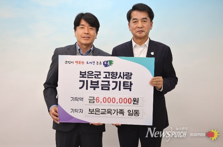 뉴스펀치 이현승 기자 | 충북 보은군은 14일 보은교육지원청 한상현 교육장을 비롯한 ‘보은교육가족’이 고향사랑기부금 600만 원을 기탁했다고 밝혔다.