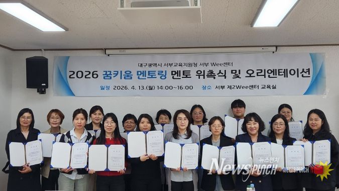 뉴스펀치 조평훈 기자 | 대구서부교육지원청 산하 서부 Wee센터는 지난 4월 13일 오후 2시, 정서적 어려움을 겪는 학생들의 버팀목이 될 ‘꿈키움 멘토단’ 17명을 대상으로 위촉식 및 오리엔테이션을 개최했다.