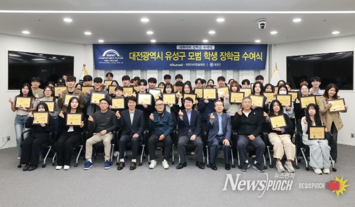 뉴스펀치 이현승 기자 | 대전 유성구는 14일 유성구청 대회의실에서 ‘귀뚜라미 장학금 수여식’을 개최했다.