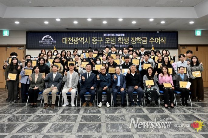 뉴스펀치 이현승 기자 | 대전 중구는 14일 귀뚜라미그룹(회장 최진민)에서 모범학생 학업을 장려하고 지역인재 육성을 위한 장학금 5,000만 원을 전달했다고 밝혔다.