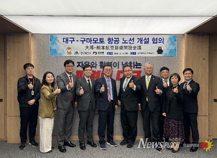 뉴스펀치 조평훈 기자 | 대구광역시는 4월 14일 시청 산격청사에서 일본 구마모토현청 및 구마모토 공항 관계자들과 면담을 갖고, 2019년 이후 중단된 대구-구마모토 직항노선 재개를 위한 협력 방안을 논의했다.