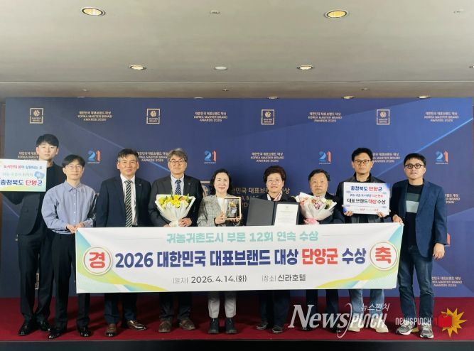 군은 지난 14일 서울 신라호텔에서 열린 ‘2026 대한민국 대표브랜드 대상’ 시상식에서 귀농귀촌도시 부문 12년 연속 대상을 수상했다고 밝혔다.