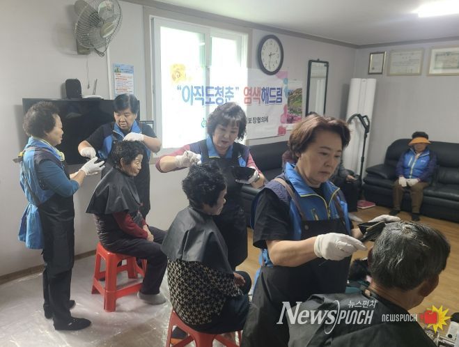 뉴스펀치 이현승 기자 | 동이면 지역사회보장협의체는 천사복지센터 김기정 센터장과 함께 소도리 경로당에서 ‘아직도 청춘! 염색해 드림’ 특화사업을 추진했다고 밝혔다.