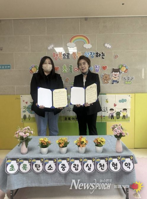 뉴스펀치 이현승 기자 | 아산시 배방읍은 지난 14일, 초록어린이집과 '1회용품 사용 줄이기 실천'을 위한 협약식을 체결했다.