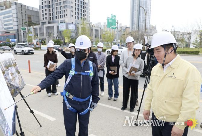 오 시장은 14일 ‘아산 The새로이센터’ 신축 공사 현장(모종동 361-57번지 일원)을 찾아 공정 진행 상황과 시설 구성, 향후 운영 방향을 종합적으로 점검했다.