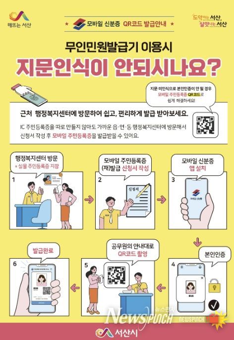 뉴스펀치 이현승 기자 | 충남 서산시가 무인민원발급기 지문인식 오류에 대한 대체 방식으로 QR코드 인증 방법을 안내했다.