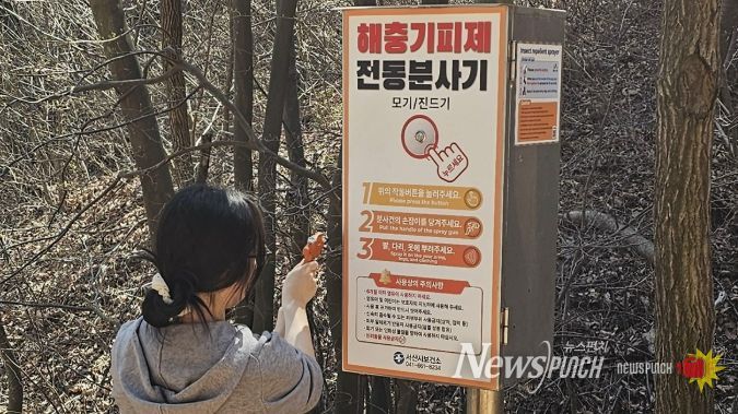 해충기피제 자동분사기는 등산로 입구, 저수지, 산책로 등 유동 인구가 많고 진드기가 많은 구역에 설치됐다.
