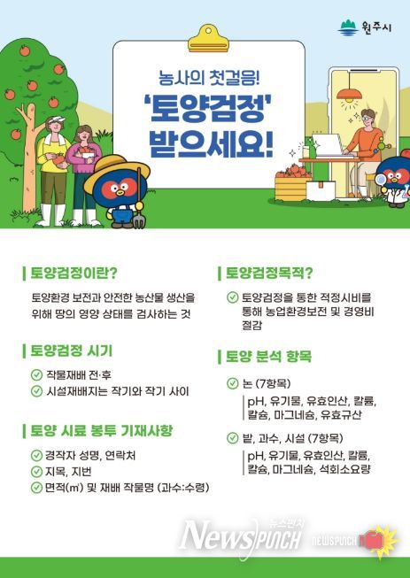 뉴스펀치 조평훈 기자 | 원주시농업기술센터는 과학적인 토양관리와 지속 가능한 농업환경 조성을 위해 종합검정실에서 토양·퇴비·액비에 대한 정밀검정 서비스를 제공하고 있다.