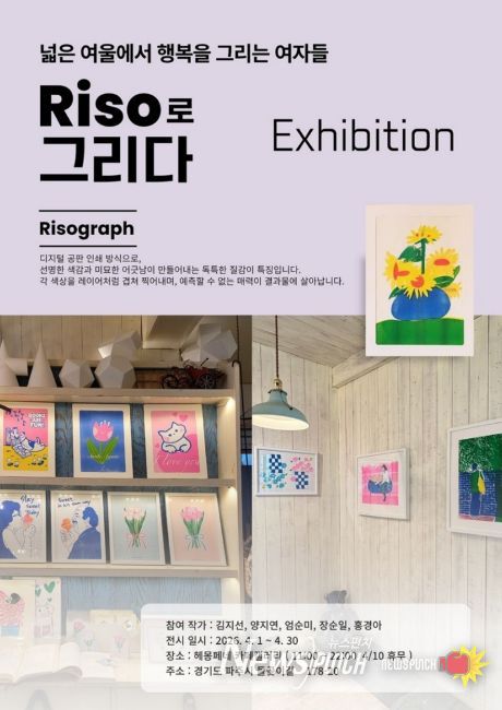 이번 전시는 파주 문발동 카페 ‘헤몽페네’에서 열리며, ‘그리소’동아리 회원들이 직접 만든 다양한 ‘리소그라프’작품들을 선보인다. 독특한 색감과 질감, 그리고 작가들의 개성이 담긴 작품들은 방문객들에게 새로운 시각적 즐거움과 예술적 영감을 선사할 것으로 기대한다.