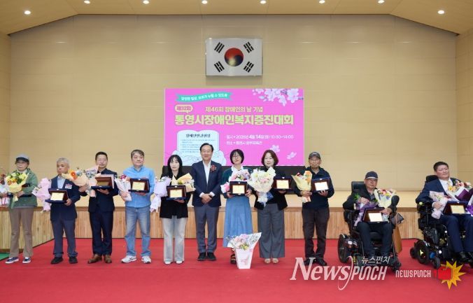 뉴스펀치 박세훈 기자 | 제46회 장애인의 날을 기념해 지난 14일 충무체육관에서 통영시 11개 장애인단체가 공동으로 주최하고 통영시장애인종합복지관의 주관으로 장애인과 가족 등 1,000여 명이 참석한 가운데 ‘제32회 통영시 장애인복지증진대회’를 개최했다.