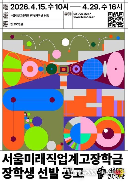 뉴스펀치 박상훈 기자 | 서울미래인재재단이 올해 서울 소재 고등학교 재학생 대상 장학금 3종의 장학생 1,250명을 동시 모집한다. 장학금 총 규모는 29억 원이며, 모집은 4월 15일 10시부터 29일 16시까지 진행된다. 신청은 각 학교를 통해 재단 누리집에서 온라인으로 진행된다.