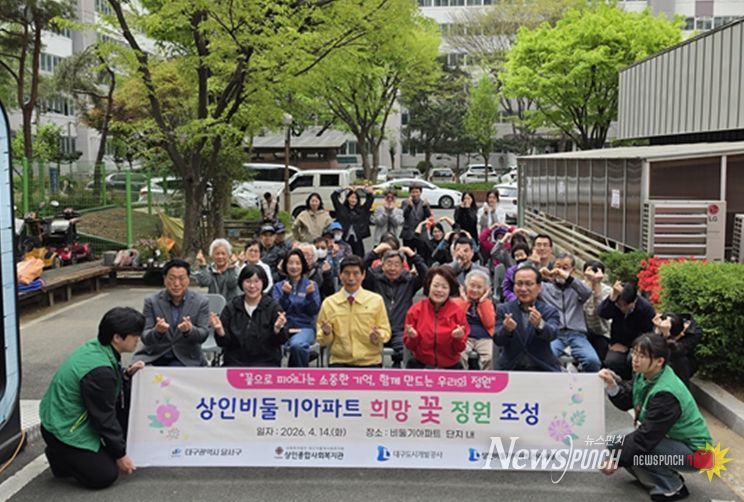 뉴스펀치 조평훈 기자 | 대구도시개발공사는 지난 4월 14일 영구임대아파트인 상인비둘기아파트 입주민들의 쾌적한 주거환경 조성을 위해 단지 내 유휴부지를 활용한 ‘희망 꽃 정원’ 조성 행사를 진행했다.