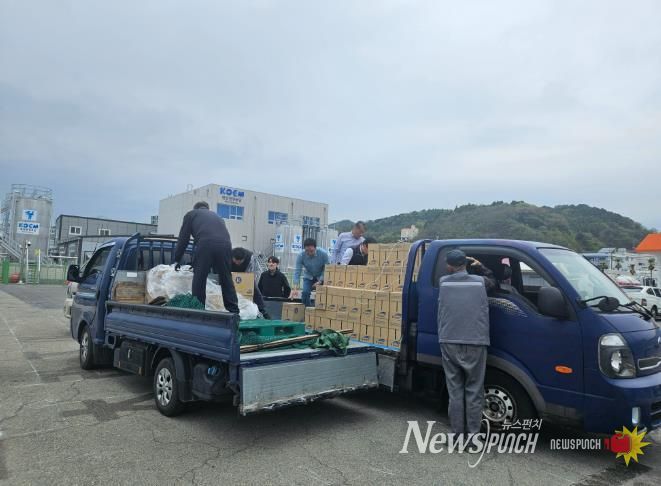 뉴스펀치 박세훈 기자 | 통영시와 수자원공사는 지난 14일 산양읍 추도 미조마을의 소규모 급수시설의 탁수 발생으로 식수 이용에 불편을 겪고 있는 주민들을 위해 병물 1.8L 850여 병 식수를 전달했다.