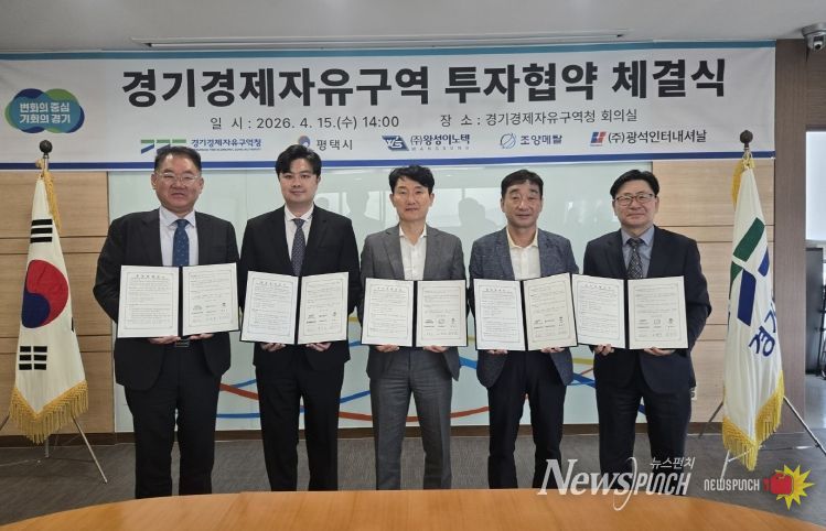 뉴스펀치 박상훈 기자 | 경기경제자유구역청은 15일 경기경제청 8층 회의실에서 평택시 및 자동차부품, 반도체, 화학 제조기업 5개사(㈜왕성이노텍, 조양메탈㈜, ㈜광석인터내셔날/그 외 2개 기업 서면 협약)와 평택 포승(BIX)지구 산업시설용지 투자협약을 체결했다.