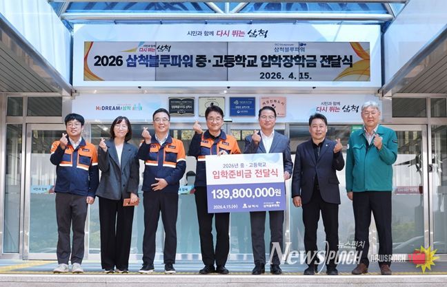뉴스펀치 조평훈 기자 | 삼척블루파워㈜(대표 강규봉)는 4월 15일 삼척시청에서 지역사회 인재 육성과 학부모의 교육비 부담 경감을 위해 관내·외 중·고등학교 신입생 699명을 대상으로 총 1억 3,980만 원의 입학준비금을 전달했다.