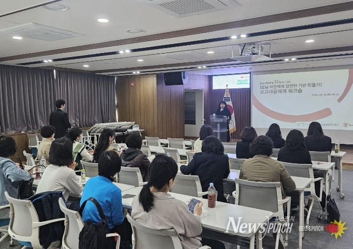 뉴스펀치 이현승 기자 | 충남사회서비스원(원장 김영옥)은 4월 14일 청양군 충남사회적경제혁신타운에서 세이브더칠드런 중부지역본부와 협력하여 ‘충남 아동에게 안전한 기관 만들기’ 사업의 일환인 보고대응체계 수립 워크숍을 개최했다고 밝혔다.