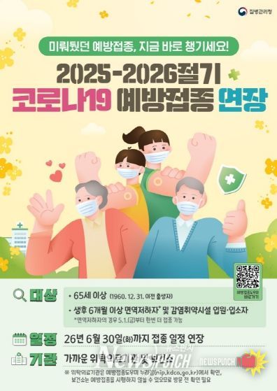 뉴스펀치 이현승 기자 | 충북도가 최근 3년간 반복되고 있는 여름철 코로나19 유행에 선제적으로 대응하기 위해, 당초 4월 말까지였던 ‘25-‘26절기 코로나19 예방접종 기간을 오는 6월 30일까지 2개월 연장한다.