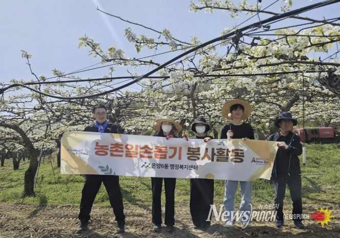 뉴스펀치 이현승 기자 | 아산시 온양6동이 본격적인 농번기를 맞아 일손 부족으로 어려움을 겪고 있는 관내 배 재배 농가를 찾아 농촌 일손 돕기 봉사활동을 펼쳤다.