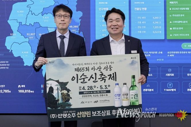뉴스펀치 이현승 기자 | 아산시가 충청권 대표 주류 기업인 ㈜선양소주와 함께 ‘제65회 아산 성웅 이순신축제’의 성공적인 개최를 위해 다시 한번 협력에 나선다.