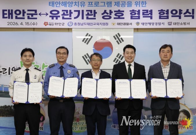 이번 협약에는 태안군을 비롯해 태안교육지원청과 태안경찰서, 태안해양경찰서, 태안소방서 등 지역 내 5개 기관이 참여해 상호 협력 체계를 구축하고 해양치유 자원을 활용한 맞춤형 프로그램을 함께 운영하기로 했다.