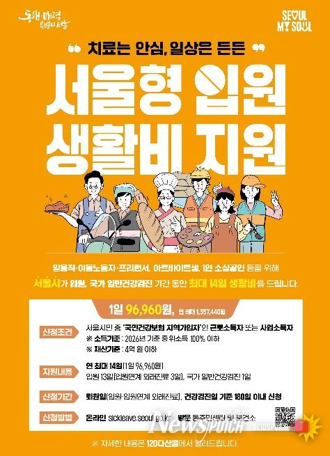 신청은 ‘서울형 입원 생활비 지원’ 누리집을 통해 온라인으로 가능하며, 거주지 관할 동 주민센터 또는 구 보건소 방문 신청도 가능하다. 신청 기한은 퇴원일 또는 건강검진일로부터 180일 이내다. 자세한 사항은 구 보건소 누리집 ‘사업안내-의료비 지원사업’ 게시판에서 확인할 수 있다.
