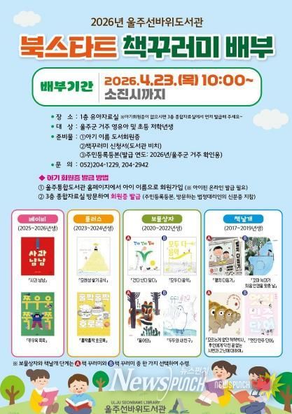 뉴스펀치 김윤걸 기자 | 울주군 군립도서관 3개소(울주선바위도서관, 울주옹기종기도서관, 울주천상도서관)가 오는 23일 ‘세계 책의 날’을 맞아 영유아 및 초등 저학년 어린이를 대상으로 ‘북스타트 책꾸러미’를 배부한다고 16일 밝혔다.