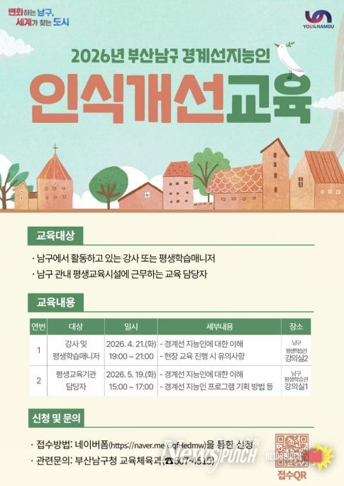 뉴스펀치 김윤걸 기자 | 부산 남구는 경계선지능인의 이해를 높이고 포용적인 지역사회를 조성하기 위해‘경계선지능인 인식 개선 교육’ 참여자를 모집한다.
