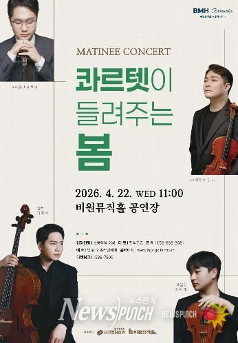 뉴스펀치 조평훈 기자 | 비원뮤직홀에서는 오전이 여유로운 관객들을 위한 마티네 콘서트 ‘콰르텟이 들려주는 봄’을 오는 4월 22일 개최한다.