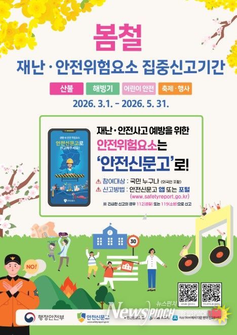 신고는 안전신문고 앱이나 포털에 접속해 ‘봄철 집중신고’ 퀵메뉴를 통해 간편하게 등록할 수 있으며, 사진이나 동영상을 함께 첨부하면 보다 정확한 신고가 가능하다.