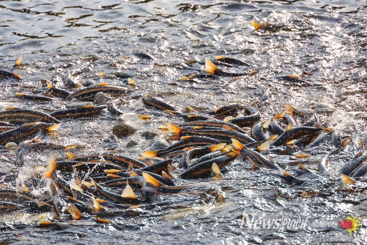 뉴스펀치 조평훈 기자 | 양양군의 젖줄인 남대천이 봄의 전령사 ‘황어’ 떼로 가득 찼다. 양양군은 최근 남대천 하구부터 상류 여울까지 산란을 위해 거슬러 올라온 황어들이 새까맣게 무리를 지으며 장관을 이루고 있다고 밝혔다.