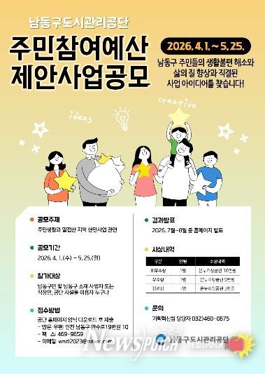 뉴스펀치 정홍균 기자 | 인천시 남동구도시관리공단은 주민이 직접 지역 현안을 해결하고 실질적으로 체감할 수 있는 사업을 발굴하기 위해 ‘2026년도 주민참여예산제’를 본격 운영한다고 16일 밝혔다.