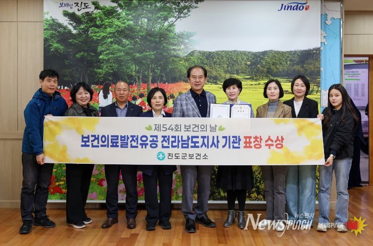 뉴스펀치 손석남 기자 | 진도군보건소는 최근 ‘제54회 보건의날’ 기념식에서 군민의 보건과 건강 증진에 이바지한 공을 인정받아 ‘공공의료발전 유공기관’ 표창을 받았다.