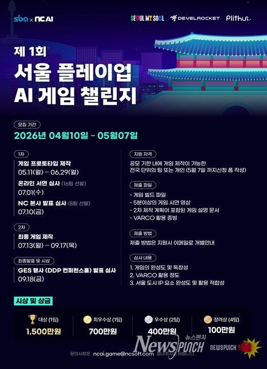 서울시는 ㈜엔씨의 AI 전문 자회사 NC AI와 협력해 ‘서울 플레이업 AI 게임 챌린지’를 개최하고, 서울 명소를 활용한 게임 콘텐츠 발굴과 개발 지원에 나선다고 밝혔다. 국내 대표 게임기업의 AI 기술을 공공 프로젝트에 접목한 사례라는 점에서도 의미가 있다.
