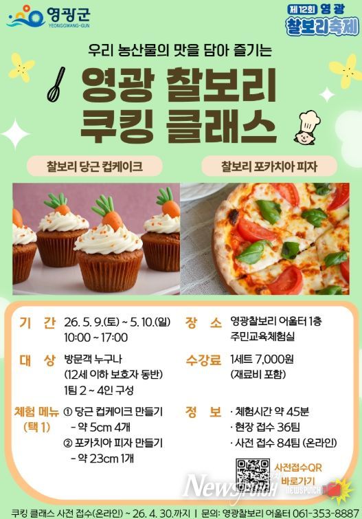 뉴스펀치 김용희 기자 | 영광군은 오는 5월 9일부터 5월 10일까지 열리는 ‘영광 찰보리 축제’ 기간 동안, 찰보리를 활용한 체험 프로그램인 ‘찰보리 쿠킹클래스’를 운영한다고 밝혔다.