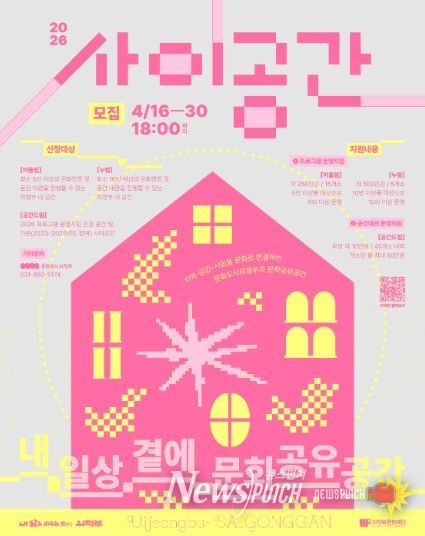 뉴스펀치 박상훈 기자 | 의정부문화재단이 문화도시조성사업의 주요 과제인 ‘15분 문화생활권’ 조성을 위해 2026 문화 공유공간 지원사업 '사이공간' 참여 공간을 오는 4월 30일 18시까지 모집한다.
