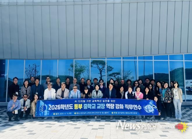 뉴스펀치 이현승 기자 | 대전동부교육지원청은 4월 16일 충청남도 아산시 일원에서 중학교 교장을 대상으로 인공지능(AI)·디지털 기반 교육 혁신 실천을 위한 역량 강화 연수를 실시했다고 밝혔다.