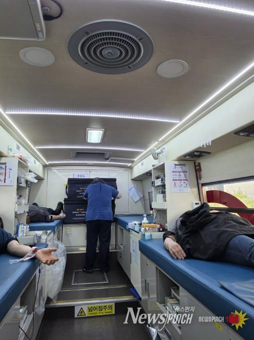 뉴스펀치 이현승 기자 | 충남교육청은 16일 도교육청 본관 주 출입구 앞에서 대전·세종·충남혈액원의 헌혈 버스를 지원받아 ‘제2차 사랑 나눔 헌혈 행사’를 진행했다.