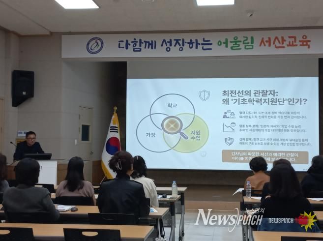 뉴스펀치 이현승 기자 | 서산교육지원청은 지난 16일, 대회의실에서 ‘2026 서산학습종합클리닉센터 기초학력지원단’ 12명을 대상으로 역량 강화 연수를 실시했다.