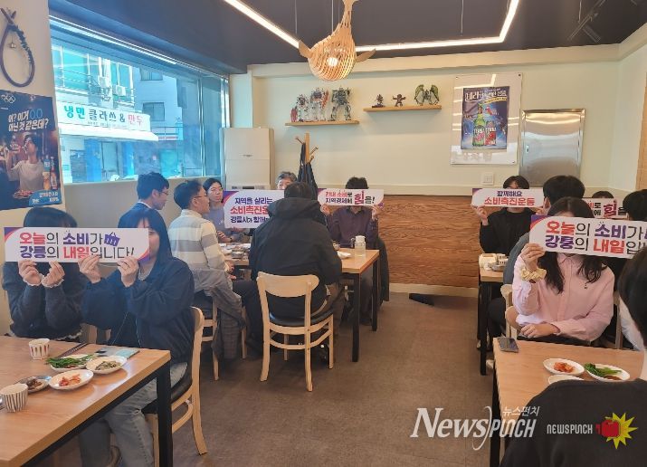 뉴스펀치 조평훈 기자 | 강릉시 세무과는 16일 교1동 소재 식당에서 점심식사를 하며 지역 소상공인을 지원하고, 지역 내 소비 활성화 분위기를 확산하기 위해 '소비촉진 릴레이 캠페인'에 참여했다.