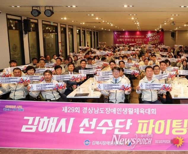 뉴스펀치 박세훈 기자 | 김해시장애인체육회는 16일 김해 라페스타뷔페에서 제29회 경상남도장애인생활체육대회에 참가하는 김해시 선수단 결단식을 개최했다.