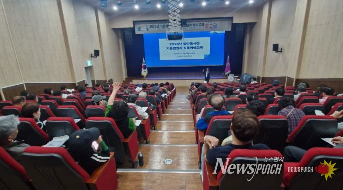 뉴스펀치 김용희 기자 | 서귀포시는 4월 16일 제남도서관에서 (사)한국외식업중앙회 서귀포시지부(지부장 이분여) 주관으로 일반음식점 기존영업주 100여 명을 대상으로 식품위생교육을 실시했다.