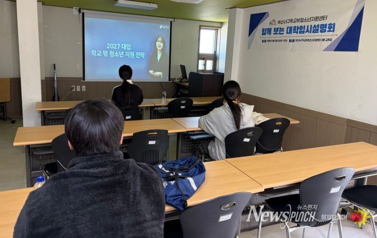 뉴스펀치 김윤걸 기자 | 부산광역시서구학교밖청소년지원센터(센터장 유은영)는 지난 15일 부산 서구 학교 밖 청소년을 대상으로 '함께 보는 대학입시 설명회' 프로그램을 운영했다.