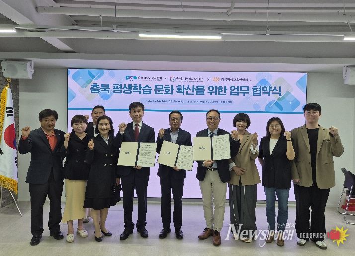 뉴스펀치 이현승 기자 | 충북인재평생교육진흥원(원장 유태종)은 16일 충북인평원 대회의실에서 도내 평생학습 문화 확산을 위해 충북평생교육연합회(회장 허정무), 충북평생교육사협회(회장 김민수)와 업무협약(MOU)을 체결했다.