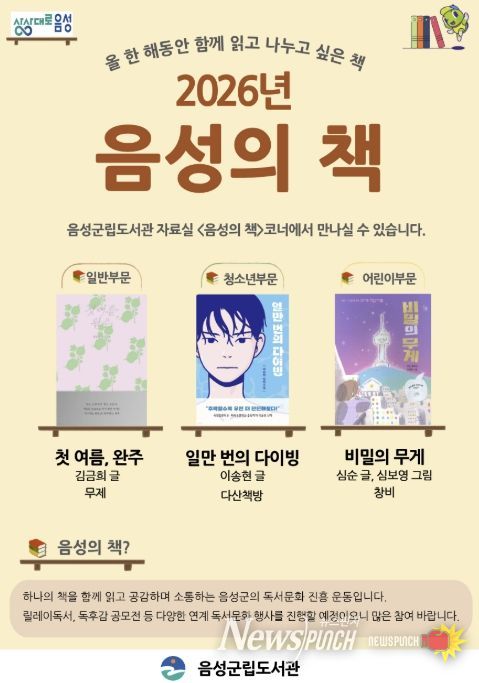 뉴스펀치 이현승 기자 | 음성군은 책으로 소통하는 독서문화를 확산하기 위한 2026년 ‘음성의 책’을 최종 선정했다고 밝혔다.