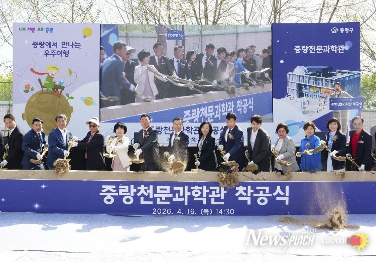 뉴스펀치 박상훈 기자 | 중랑구는 4월 16일 오후 2시 30분, 면목동 용마폭포공원(면목동 1316-8)에서 ‘중랑천문과학관’ 건립공사 착공식을 개최했다. 이번 사업은 미래 과학 인재 양성을 위한 기반 조성의 일환으로, 천문과학관은 2027년 상반기 개관을 목표로 추진된다.