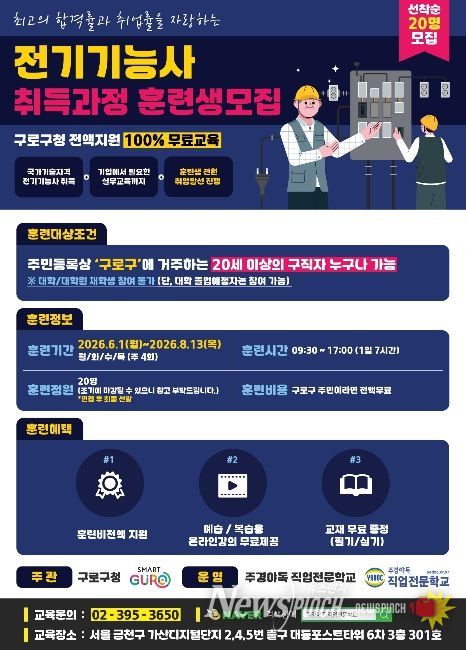 뉴스펀치 박상훈 기자 | 구로구가 전기기능사 취득 과정 훈련생을 5월 29일까지 모집한다.