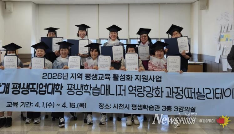 뉴스펀치 박세훈 기자 | 사천시 평생학습관은 지역 평생교육 현장에서 활동할 전문 인력을 양성하기 위해 운영한 '평생학습매니저 역량강화 과정'을 성공적으로 마무리했다고 17일 밝혔다.